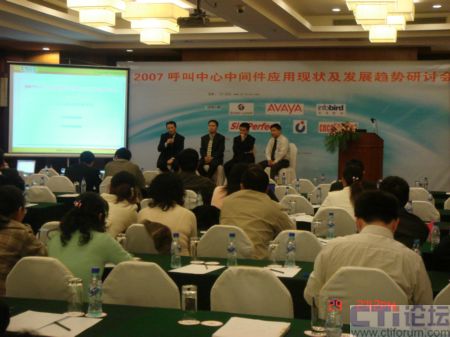 2007年11月29日,由CTI論壇主辦的,2007呼叫中心中間件應(yīng)用現(xiàn)狀及發(fā)展趨勢研討會在上海光大會展中心國際大酒店隆重召開,會議期間,來自于當(dāng)前各主流中間件廠商的專家在臺上回答參會代表的提問,與代表互動交流,并就熱點問題各抒己見,共同探討。