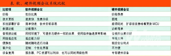與傳統(tǒng)的硬件視頻會議系統(tǒng)相比較,軟件視頻會議系統(tǒng)可以利用現(xiàn)有的網(wǎng)絡環(huán)境和計算機設備,并能夠提供不遜色于硬件系統(tǒng)的音視頻質量和更為豐富的數(shù)據(jù)協(xié)作功能; 同時,物美價廉的系統(tǒng)投資和靈活方便的配置也是軟件視頻會議產品非常引人關注的優(yōu)勢。
