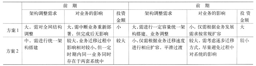 表1 移動(dòng)增值業(yè)務(wù)網(wǎng)演進(jìn)方案對(duì)比表