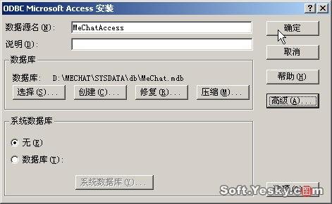 為使Mechat系統(tǒng)具有較高的運(yùn)行效率,我們將其添加數(shù)據(jù)庫(kù)支持,單擊“開(kāi)始”/“設(shè)置”/“控制面板”,選擇“治理工具”/“數(shù)據(jù)源(ODBC)”,切換至“系統(tǒng)DSN”,單擊“添加”按鈕啟動(dòng)ODBC數(shù)據(jù)源添加向?qū),選擇“MicrosoftAccessDriver(*、mdb)”,然后在DSN屬性設(shè)置窗口設(shè)置數(shù)據(jù)源名稱為“MeChatAccess”,選擇數(shù)據(jù)庫(kù)文件為D:\MeChat\SysData\db目錄下的MeChat、mdb(如圖23)。設(shè)置完畢,單擊“確定”退出。