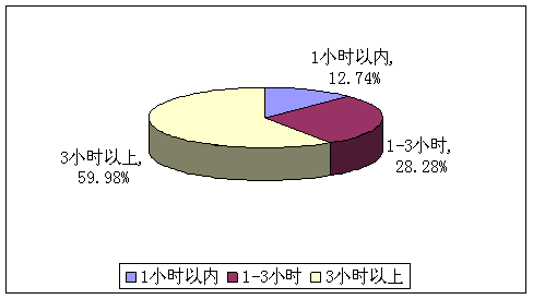 A、1小時(shí)以內(nèi)(12.74%) B、1-3小時(shí)(28.28%) C、3小時(shí)以上(59.98%)