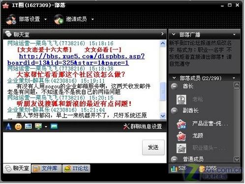 在群聊的過(guò)程中兩款軟件都各特色。百度Hi的特色是當(dāng)用戶向群中一個(gè)不是自己好友的人發(fā)送信息時(shí),該用戶會(huì)在百度網(wǎng)頁(yè)短信息中可以收到消息,此項(xiàng)功能十分適合上班時(shí)不能打開(kāi)聊天軟件的朋友使用。Lava則是將群功能體現(xiàn)的更加強(qiáng)大些,除了消息發(fā)送外可以建立屬于群部落的文件庫(kù),就是這個(gè)部落的藏寶室,有什么好東東都可以放進(jìn)去,簡(jiǎn)直就是超大的網(wǎng)絡(luò)硬盤。(圖9、圖10)