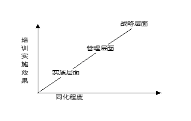 為了確保培訓實施效果能達到預(yù)期的效果及水平即達到預(yù)期的認識水平,來自于管理層的執(zhí)行力必不可少,任何一項培訓工作如果不能自下而下的進行“洗腦”即同化過程,很難保證培訓效果。簡言之,我們需要從戰(zhàn)略角度到管理層面直到實施層面的同化過程。