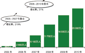 圖4 2005-2010年中國(guó)無(wú)線搜索用戶數(shù)量變化情況