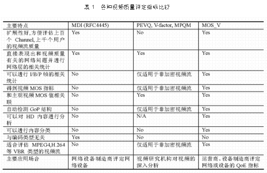 MOS_V,另一種是視頻的全參考(Full Reference)質(zhì)量評(píng)定。幾種評(píng)定方面的簡(jiǎn)單比較如表1所示,相應(yīng)指標(biāo)的介紹可以參考《電信網(wǎng)技術(shù)》2007年第12期的《IPTV