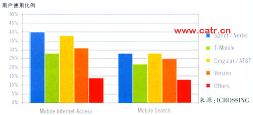 美國的移動搜索業(yè)務(wù)發(fā)展迅速,領(lǐng)先全球市場。根據(jù)美國市場調(diào)查公司的調(diào)查,美國移動用戶中,經(jīng)常使用移動搜索的用戶達(dá)到22%。美國主流運(yùn)營商均已經(jīng)推出了移動搜索業(yè)務(wù),其中Sprint和合并后的Cingular/AT&T業(yè)務(wù)發(fā)展較好。