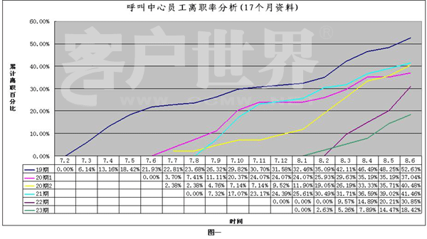 員工流失率控制,在行業(yè)內(nèi)困惑著不少中心領(lǐng)導(dǎo)。業(yè)內(nèi)專家集中精力,采取各種措施,試圖減少流失率對服務(wù)中心成本的影響。為此,本項(xiàng)目組對某客戶服務(wù)中心員工5期新員工進(jìn)行了17個(gè)月的數(shù)據(jù)采集、分析,涉及近200名離職員工的信息分析。從時(shí)間變量角度,對新員工內(nèi)心體驗(yàn)進(jìn)行闡述,并分析此考察期間,員工負(fù)性情緒、工作事件、經(jīng)歷體驗(yàn)與促使員工離職行為之間的關(guān)系,建立針對問題的性質(zhì),制定干預(yù)策略。本設(shè)想建立在針對員工培訓(xùn)體系進(jìn)行優(yōu)化,減少已發(fā)現(xiàn)的新員工離職原因?qū)θw員工的影響,從而實(shí)際的減少員工流失、工作低績效現(xiàn)象,達(dá)到提高組織績效的目的。
