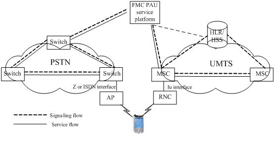 在FMC-PAU中,移動(dòng)終端屬于雙;蚨嗄=K端,用戶使用該終端既可以接入到3G移動(dòng)網(wǎng),也可以采用無線方式通過接入節(jié)點(diǎn)(AP)接入到PSTN網(wǎng)絡(luò)中。