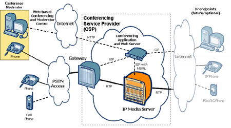 — 而屬于現(xiàn)在。許多CSP已開始采用應(yīng)用服務(wù)器、媒體服務(wù)器和媒體網(wǎng)關(guān)來運(yùn)營具成本效益的IP數(shù)據(jù)中心,從而向PSTN用戶群提供經(jīng)濟(jì)的會議服務(wù)。
