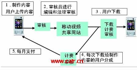 由于UGC(用戶產(chǎn)生內(nèi)容)類業(yè)務(wù)的產(chǎn)生,內(nèi)容類業(yè)務(wù)出現(xiàn)了創(chuàng)新的商業(yè)模式,根據(jù)內(nèi)容下載情況與內(nèi)容提供者之間進(jìn)行分成。和黃3公司就推出了這樣的盈利模式,我國移動視頻共享網(wǎng)站也在向這個(gè)方向探索。