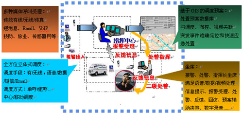 接處警應(yīng)用系統(tǒng)是應(yīng)急聯(lián)動中心的核心部分,系統(tǒng)在保證“先進、實用、可靠”的前提下,與全市應(yīng)急聯(lián)動單位實現(xiàn)互聯(lián)互通、信息共享;把接處警系統(tǒng)與GPS、有無線通信、視頻監(jiān)控、預(yù)案指揮等技術(shù)系統(tǒng)有機的結(jié)合在一起,形成“以計算機網(wǎng)絡(luò)為基礎(chǔ),以有線、無線通信為紐帶,以接處警信息傳遞、處理為核心,以資源共享和計算機輔助決策為載體的綜合性系統(tǒng)工程”,從而提高應(yīng)急聯(lián)動中心的指揮調(diào)度、輔助決策等綜合處置能力,滿足在復(fù)雜條件下指揮、調(diào)度、協(xié)調(diào)、處置城市不同種類和等級的突發(fā)事件的實戰(zhàn)需要。