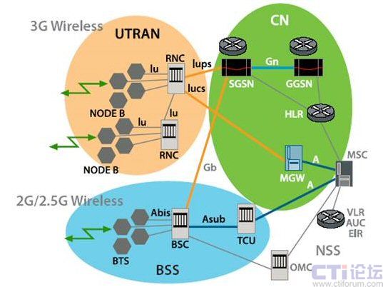 (RNC) 這一元素。在 3G UMTS 網(wǎng)絡(luò)中,RNC 可執(zhí)行無(wú)線(xiàn)電資源管理、移動(dòng)管理和加密功能,它可通過(guò)媒體網(wǎng)關(guān)連接至電路交換核心網(wǎng)絡(luò),實(shí)現(xiàn)電路交換語(yǔ)音服務(wù),此外,它還可連接至數(shù)據(jù)包交換核心網(wǎng)絡(luò)中的