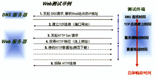 在用戶對無線數(shù)據(jù)業(yè)務(wù)的訪問過程中,通常會(huì)包含多個(gè)階段(業(yè)務(wù)處理過程)。如當(dāng)用戶在使用手機(jī)要瀏覽網(wǎng)頁的時(shí)候,先輸入網(wǎng)頁的地址,然后按手機(jī)上的“訪問”按鈕,一段時(shí)間后手機(jī)的屏幕上就會(huì)顯示出要瀏覽的網(wǎng)頁頁面。看似簡單的過程,其實(shí)這里面包含了以下幾個(gè)步驟:DNS查找時(shí)間、TCP連接時(shí)間、服務(wù)器響應(yīng)時(shí)間和數(shù)據(jù)下載時(shí)間。在這中間,只要任何一步出了問題,如DNS解析時(shí)間過長、TCP連接建立時(shí)間過長、應(yīng)用服務(wù)器負(fù)載過重、網(wǎng)絡(luò)可用信道資源少而造成數(shù)據(jù)下載慢,都可能會(huì)造成頁面下載失敗。因此,為了能準(zhǔn)確地定位造成用戶對Web服務(wù)質(zhì)量感知度差的原因,我們就需要得到各階段的性能參數(shù),這樣才能快速地進(jìn)行相關(guān)服務(wù)器和網(wǎng)絡(luò)的故障查找并解決問題。
