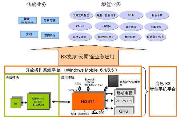 K3方案中集成了GPS、WAPI/WiFi、CMMB(帶CA)的等各種主流應(yīng)用,手機(jī)廠商在選擇時可以快速的剪裁、組合,形成不同配置的天翼手機(jī)系列,來滿足不同消費(fèi)群體的需求。