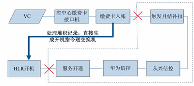 以圖4智能網充值開機流程為例,其經歷的步驟繁多,特別是其中信控判斷邏輯復雜,程序處理耗時多,是引起月結用戶充值到賬但無法及時開機的關鍵環(huán)節(jié)。站在服務用戶的角度,最直接的應急方式便是提取已繳費入賬的號碼直接送HLR施工開機,對于存在欠費可能的用戶,其開機狀態(tài)在正常流程進行修復,但對于充值后仍欠費的用戶,其開機狀態(tài)將在經歷過信控后自動被修改為停機。