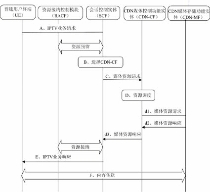 。5)CDN媒體存儲功能實(shí)體(CDN-MF):負(fù)責(zé)向IPTV業(yè)務(wù)用戶傳送媒體內(nèi)容。