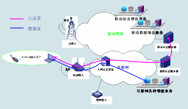 在未進(jìn)行融合前,WLAN與3G是兩個(gè)互相獨(dú)立的通訊業(yè)務(wù)系統(tǒng)。WLAN只是有線寬帶接入方式的一個(gè)很好補(bǔ)充,對(duì)用戶來(lái)說(shuō),它擺脫了線纜的束縛,還提供了一定的移動(dòng)性,用戶使用的終端具有WLAN功能,可通過(guò)WLAN設(shè)備接入互聯(lián)網(wǎng),享用互聯(lián)網(wǎng)上開(kāi)放花園里的各種應(yīng)用;3G是2G/2.5G移動(dòng)通訊系統(tǒng)在無(wú)線空口和移動(dòng)核心網(wǎng)上的一次升級(jí),用戶使用的終端是手機(jī)或帶3G數(shù)據(jù)卡的智能終端,可通過(guò)基站接入移動(dòng)核心網(wǎng),享受運(yùn)營(yíng)商在語(yǔ)音和數(shù)據(jù)域提供的封閉花園里的增值服務(wù),如鈴聲下載、短信、彩信等。