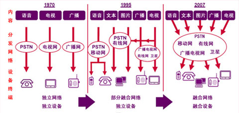 2010年1月13日,國(guó)務(wù)院常務(wù)會(huì)議決定加快推進(jìn)電信網(wǎng)、廣播電視網(wǎng)和互聯(lián)網(wǎng)三網(wǎng)融合。5年內(nèi)全面實(shí)現(xiàn)電信網(wǎng)、廣播電視網(wǎng)和互聯(lián)網(wǎng)三網(wǎng)融合,并明確提出階段性目標(biāo)和重點(diǎn)工作。