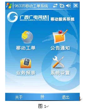 移動工單系統(tǒng)是數(shù)字電視客戶呼叫中心平臺系統(tǒng)的延伸,它結(jié)合最新的網(wǎng)絡(luò)移動技術(shù),實現(xiàn)數(shù)字電視服務(wù)工單分派業(yè)務(wù)的自動流轉(zhuǎn)和實時流轉(zhuǎn),各地市維護站的服務(wù)工作人員通過智能手機終端,實時獲取工作任務(wù)、計劃安排,進行業(yè)務(wù)處理,通過移動網(wǎng)絡(luò)查詢客戶信息、查詢用戶產(chǎn)品訂購資料,上報處理結(jié)果和用戶反饋信息,通過移動網(wǎng)絡(luò)提交到管理部門,管理層能及時的掌握服務(wù)進展情況,并能隨時做出決策和指揮,真正實現(xiàn)對用戶最快速、有效的服務(wù)需求響應(yīng),保證了服務(wù)質(zhì)量和用戶滿意度,提升了數(shù)字電視的服務(wù)水平與服務(wù)檔次。其界面如圖1所示。