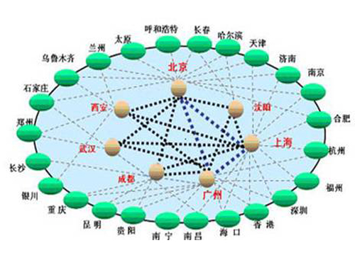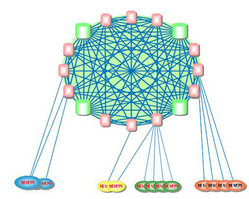 網(wǎng)絡(luò)扁平化概念就適時提出來了。現(xiàn)在,網(wǎng)絡(luò)扁平化已經(jīng)是運營商網(wǎng)絡(luò)建設(shè)的主要指導思想了。特別是中國聯(lián)通,由于歷史原因造成的骨干網(wǎng)節(jié)點并不夠多導致其南北方網(wǎng)絡(luò)品質(zhì)存在一定差異。而扁平化后能很好的解決此問題。下圖為網(wǎng)絡(luò)扁平化示意圖。
