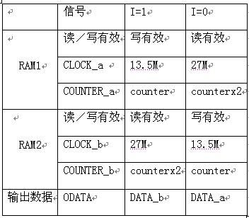 RAM塊進行乒乓方式操作信號的分配表如下: