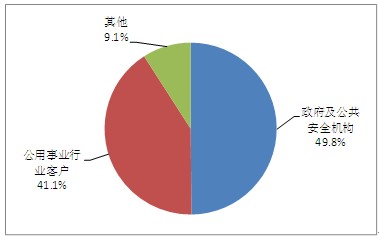 從細分市場來看,政府及公共安全機構(gòu)為最大的細分市場,占總市場規(guī)模的49.8%,而且比重仍有上升趨勢,公用事業(yè)行業(yè)客戶市場占比41.1%,其他客戶占9.1%。