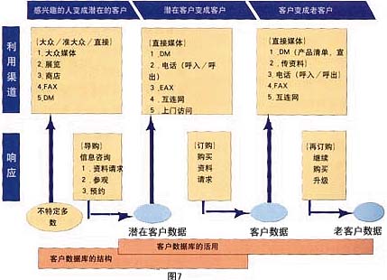 ——銷(xiāo)售支持:東京煤氣公司擁有三種主要的家用產(chǎn)品:地板式空調(diào),煤氣暖氣及煤氣衣服干燥機(jī)。此公司于1993年開(kāi)始運(yùn)用數(shù)據(jù)庫(kù)營(yíng)銷(xiāo),現(xiàn)已取得了驕人的成果。其中主力產(chǎn)品——地板式空調(diào),盡管周期長(zhǎng)、價(jià)格高,1997年一年就銷(xiāo)售了3萬(wàn)6千套,同時(shí)從對(duì)這些用戶(hù)調(diào)查的結(jié)果發(fā)現(xiàn)“滿(mǎn)意”的占96%。下面介紹一下“地板式空調(diào)”的營(yíng)銷(xiāo)方法(見(jiàn)圖5)