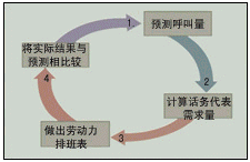 預測呼叫量是第一步,是創(chuàng)建呼叫中心呼叫量預測的方法,這種預測建立在對歷史呼叫量和當前呼叫量數(shù)據(jù)分析的基礎上。根據(jù)第一步的結論,計算話務代表需求量,以及在每天不同時段座席代表的需要量。然后,可做出勞動力排班表,創(chuàng)建一個與需求相匹配的勞動力上班時間表。最后一步是將實際結果與預測相比較。