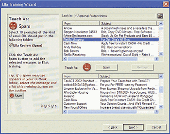 由開(kāi)放領(lǐng)域軟件(Open Field Software)新開(kāi)發(fā)的Ella 能分揀電子郵件,并將垃圾郵件撇在一邊。如果你渴望清理你的郵箱又舍不得放棄Outlook 的話(huà),Ella就是你理想的選擇。大多數(shù)電郵軟件的分類(lèi)都是以信件的特定部位來(lái)進(jìn)行分類(lèi)的,如發(fā)件人的姓名或郵件主題。而Ella的分類(lèi)更加詳盡周到,分類(lèi)元素有100多種,從發(fā)信人到信件內(nèi)容再到信件來(lái)源,可一一進(jìn)行分類(lèi)。如圖: