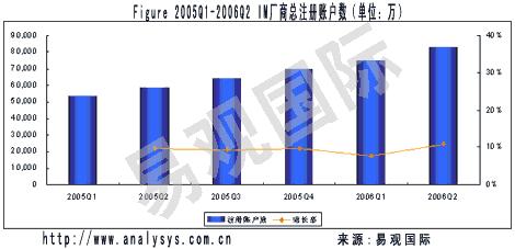 圖:2005年第一季度至2006年第二季度 IM 廠商總注冊帳戶數(shù)