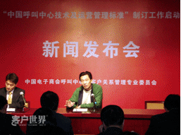 2月7日,中國(guó)電子商會(huì)呼叫中心與客戶關(guān)系管理專業(yè)委員會(huì)(CNCCA)在北京信息產(chǎn)業(yè)部萬(wàn)壽路辦公區(qū)召開(kāi)“中國(guó)呼叫中心技術(shù)及運(yùn)營(yíng)管理規(guī)范”制訂工作啟動(dòng)新聞發(fā)布會(huì)。在京各主要新聞媒體高度關(guān)注在國(guó)家宏觀政策轉(zhuǎn)向服務(wù)外包的大背景下,呼叫中心中國(guó)標(biāo)準(zhǔn)的出臺(tái)將為產(chǎn)業(yè)的發(fā)展和國(guó)際競(jìng)爭(zhēng)格局的變化帶來(lái)如何的影響。呼叫中心行業(yè)各知名廠商、運(yùn)營(yíng)商、服務(wù)提供商代表出席新聞發(fā)布會(huì)。會(huì)議同時(shí)發(fā)布了《2007年中國(guó)呼叫中心運(yùn)營(yíng)標(biāo)桿管理報(bào)告》。