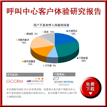 隨著呼叫中心服務(wù)在中國市場(chǎng)的蓬勃發(fā)展,每個(gè)人也都直接或間接的以某種形式成為呼叫中心的使用者,而這些呼叫中心服務(wù)提供商所提供的服務(wù)體驗(yàn)對(duì)其品牌的塑造至關(guān)重要。為更好了解呼叫中心用戶的客戶體驗(yàn),從而有助于改善并優(yōu)化用戶的呼叫中心體驗(yàn),我們組織了“呼叫中心客戶體驗(yàn)調(diào)查——中國大陸”,本次調(diào)查由澳大利亞的callcentres.net 和GCCRM共同組織,旨在以自然時(shí)間為序,從體驗(yàn)為中心的角度展現(xiàn)呼叫中心的客戶體驗(yàn),而非傳統(tǒng)的以流程或效率為中心。