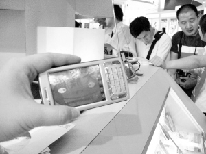 “第一眼感覺如同收音機(jī)!痹诟呓粫(huì)現(xiàn)場(chǎng)埃立特通信的展臺(tái)前,一位拿著該公司生產(chǎn)的電視手機(jī)的游客好奇地把玩著這臺(tái)拖著收音機(jī)式天線的電視手機(jī)——已在廣東省局部試點(diǎn)運(yùn)營(yíng)的廣電系手機(jī)電視。