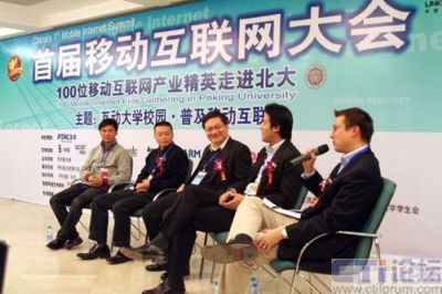 2007年12月19日,首屆移動(dòng)互聯(lián)網(wǎng)大會(huì)在中國的北京大學(xué)隆重舉辦。由手機(jī)圈傳媒主辦的本次活動(dòng)以“互動(dòng)大學(xué)校園,普及移動(dòng)互聯(lián)網(wǎng)”為主題,以“100位精英走進(jìn)北大”為活動(dòng)主線。包括中國移動(dòng)研究院、英特爾、GOOGLE、NOKIA、MOTO、聯(lián)想研究院、ARM、方正阿帕比、空中網(wǎng)、3G門戶、手機(jī)騰訊網(wǎng)、手機(jī)搜狐網(wǎng)、手機(jī)新浪網(wǎng)、大頭網(wǎng)、萬蝶網(wǎng)、美科互動(dòng)、dotMobi公司等100多家移動(dòng)互聯(lián)網(wǎng)領(lǐng)先企業(yè)均參與到本次論壇。