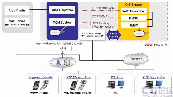 奧運(yùn)社區(qū)傳送服務(wù),簡(jiǎn)稱OCM,是用于競(jìng)賽運(yùn)營(yíng)的移動(dòng)通信服務(wù)機(jī)構(gòu),OCM的服務(wù)包括使用短信和彩信的信息群發(fā)以及使用即時(shí)信息和電子郵件的社區(qū)通信服務(wù)。屆時(shí),三星北京2008WOW將根據(jù)用戶的喜好設(shè)置提供個(gè)性化的奧運(yùn)信息,分為競(jìng)賽、新聞、信息、火炬接力和“我的WOW”——每個(gè)WOW用戶可以根據(jù)自身的喜好定制特殊的信息服務(wù)。