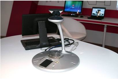 在耐心聽完介紹后,禁不住誘惑,我便親自做了現(xiàn)場體驗,原來這套系統(tǒng)所使用的360o攝像頭不同于一般的攝像頭,它集4個攝像頭以及USB設備為一體,不改變位置就能輕松實現(xiàn)360度全景覆蓋,讓所有人真正面對面交流。而投影儀的界面設定更是人性化,界面分上下兩部份,上半部分顯示的是PPT內容和發(fā)言者,下半部分顯示的是與會人員。而它的智能語音識別系統(tǒng)更是讓人叫絕,投影儀上的發(fā)言區(qū)頭像根據(jù)發(fā)言者的聲音自動更換,而不受人聲以外的任何聲音的干擾。系統(tǒng)并附帶情景解說詞,系統(tǒng)會自動介紹與會人員所在地。在投放PPT界面旁邊有個信息欄,在上面能夠看到負責人的在線信息,并且可以選擇最合適的方式進行溝通,不但可以發(fā)即時消息和傳輸文件,還可以進行語音通話,甚至可以直接用語音連接辦公室電話,只要有網絡,隨便哪里都可以接得到辦公室電話。