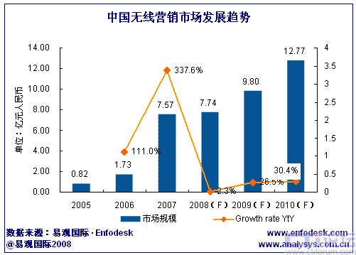 易觀:2008年中國無線營銷市場規(guī)模將達7.74億元