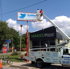 繼華爾街日報、紐約時報、英國衛(wèi)報等報紙利用起Twitter后,最近,據(jù)Techcrunch網(wǎng)站消息稱,美國新奧爾良名為NakedPizza的比薩店,不僅在Twitter上注冊了帳號,而且拆除了之前標(biāo)有訂餐電話的店前廣告牌,取而代之的是一塊以Twitter為主題的新廣告牌。