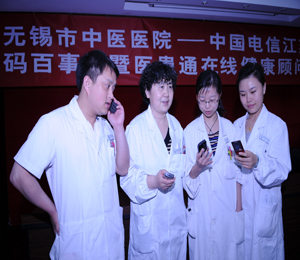 5月25日,江蘇省無錫市中醫(yī)醫(yī)院18位專家級醫(yī)師接受了中國電信江蘇公司的聘請,成為無錫首批電話在線的健康顧問。全省電信用戶只要撥打號碼百事通118114,即可得到在線醫(yī)療、健康專業(yè)指導(dǎo)。118114健康平臺(tái)還能為出院病人提供康復(fù)指導(dǎo)、動(dòng)態(tài)跟蹤、復(fù)診提醒等健康管理服務(wù)。通過這一形式,能盡快實(shí)現(xiàn)一個(gè)醫(yī)前、醫(yī)中、醫(yī)后服務(wù)鏈。圖為無錫市中醫(yī)醫(yī)院的健康顧問們在為患者集體電話會(huì)診。