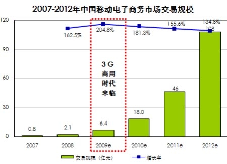2008年電信重組、手機上網資費下調及09年初的3G牌照發(fā)放,手機網絡應用正得到快速發(fā)展,中國迎來了3G時代。而手機以隨時隨地隨身的便利性成為未來人們商務和生活的重要應用工具,移動電子商務也將成為繼傳統(tǒng)互聯(lián)網電子商務后又一令人關注的領域。