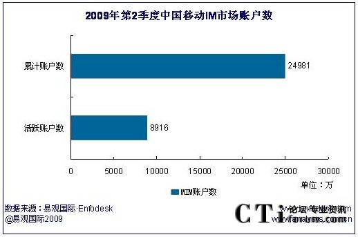 2009年第2季度中國移動IM市場活躍賬戶數(shù)達8916萬