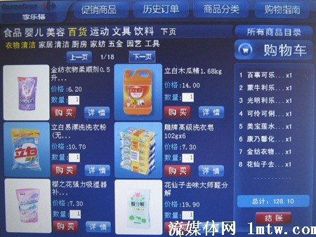 記者在家樂福IPTV購物平臺上看到,商品的種類相當(dāng)豐富,按日常用到的分成了食品、嬰兒、美容、百貨、運(yùn)動、文具、飲料幾個(gè)大類,而每一類里又分成不同的小類,比如美容類里又分護(hù)膚、清潔、男士、彩妝、紙巾等小類。其價(jià)格與在家樂福購物相同,并且還有不少產(chǎn)品在打折。滿118元即可免費(fèi)配送,對于沒有時(shí)間、精力逛超市的人來講,可以說相當(dāng)方便。