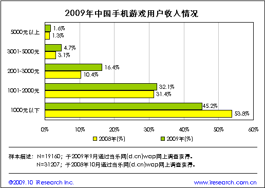 2009年手機(jī)游戲用戶以男性和青少年為主