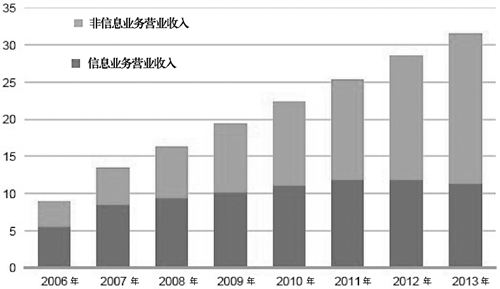 中國(guó)無(wú)線數(shù)據(jù)服務(wù)收入展望 單位:10億美元