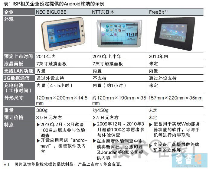 有類似舉措的并非只有NEC BIGLOBE一家。以ISP相關企業(yè)為中心,通信運營商涉足Android終端業(yè)務的行動在2010年將不斷出現(表1)。