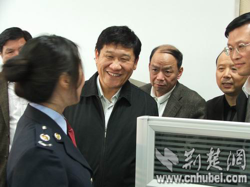 圖:共湖北省委常委、常務(wù)副省長(zhǎng)李憲生與12366熱線工作人員親切交談