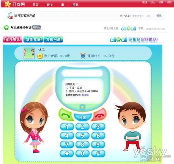 近日,阿里通網(wǎng)絡(luò)電話與國(guó)內(nèi)著名社交網(wǎng)站開心網(wǎng)合作,推出了定位于年輕族群,專為SNS網(wǎng)站量身定做的flash版網(wǎng)絡(luò)電話。開心網(wǎng)用戶只需在組件實(shí)驗(yàn)室中添加阿里通flash網(wǎng)絡(luò)電話,無須注冊(cè)和安裝任何插件,即可直接在開心網(wǎng)網(wǎng)頁上撥打全球任意的手機(jī)和固話。據(jù)悉,為了讓更多的用戶能體驗(yàn)到flash網(wǎng)絡(luò)電話的便利,只要開心網(wǎng)內(nèi)的好友達(dá)到5人,添加組件成功后都可獲贈(zèng)一定的免費(fèi)通話時(shí)長(zhǎng)。