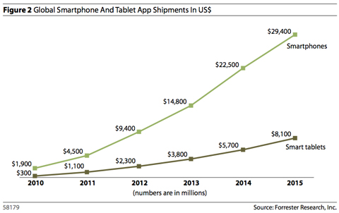 北京時(shí)間3月1日消息,據(jù)國(guó)外媒體報(bào)道,市場(chǎng)研究公司Forrester當(dāng)?shù)貢r(shí)間周一發(fā)表報(bào)告稱,到2015年,移動(dòng)應(yīng)用市場(chǎng)規(guī)模將達(dá)到380億美元。