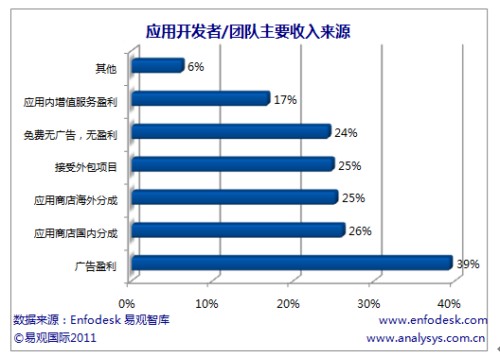 易觀國際(Analysys International)分析認為應(yīng)用開發(fā)者難以獲取盈利分成的主要原因在于用戶對應(yīng)用本身沒有付費下載習(xí)慣,應(yīng)用商店缺少對應(yīng)用的推廣,但應(yīng)用開發(fā)者難以盈利也和移動應(yīng)用同質(zhì)化嚴(yán)重,難以被用戶認可本身強相關(guān)。