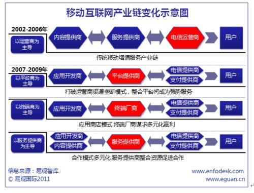 易觀:運(yùn)營(yíng)商在移動(dòng)互聯(lián)網(wǎng)產(chǎn)業(yè)鏈中逐漸失去主導(dǎo)
